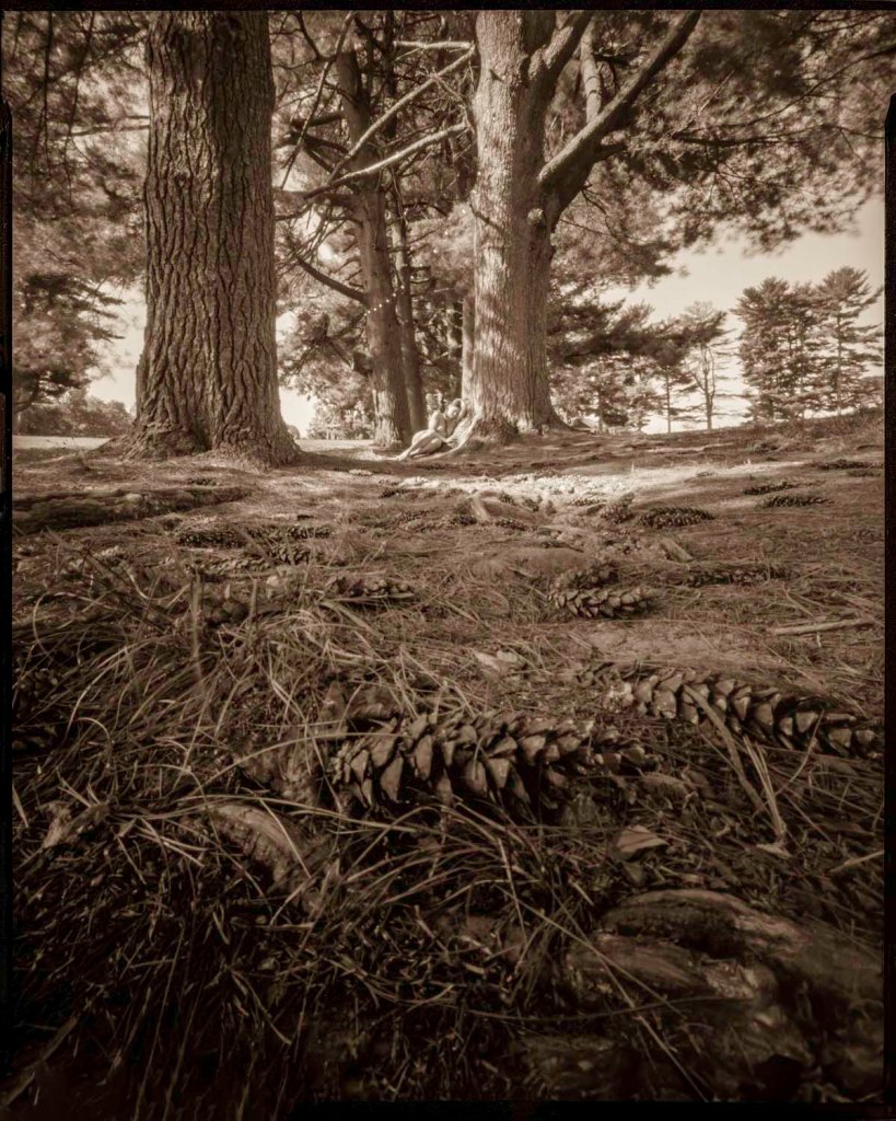 First, I like the way the images look. There is a dream-like softness and ethereal quality to the images. Part of this may be due to the fact there is never a super sharp focus like you get using a camera with a lens. Another quality is there is an infinite depth-of-field from the closest to the farthest object. The angle of view for my camera is very wide. I like the resulting distortion which can make items close to the camera appear stretched. Sometimes accidental movement by the model can add to an image and even an accidental light leak can occasionally benefit an image. I like working with large format film and I like the uncertainty of the results. I set everything up and hope for the best.